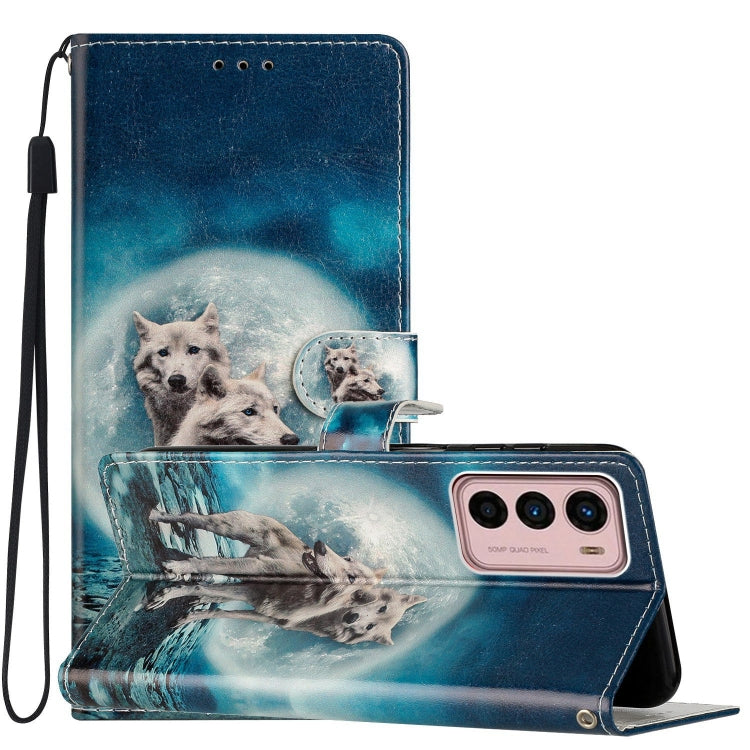 - 1x Estuche de Cuero para Motorola Moto G42 con Dibujo Coloreado Lobos Gemelos