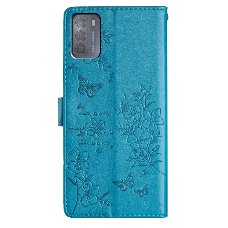 Funda de Cuero para Motorola Moto G50 con Mariposas y Flores (Azul)