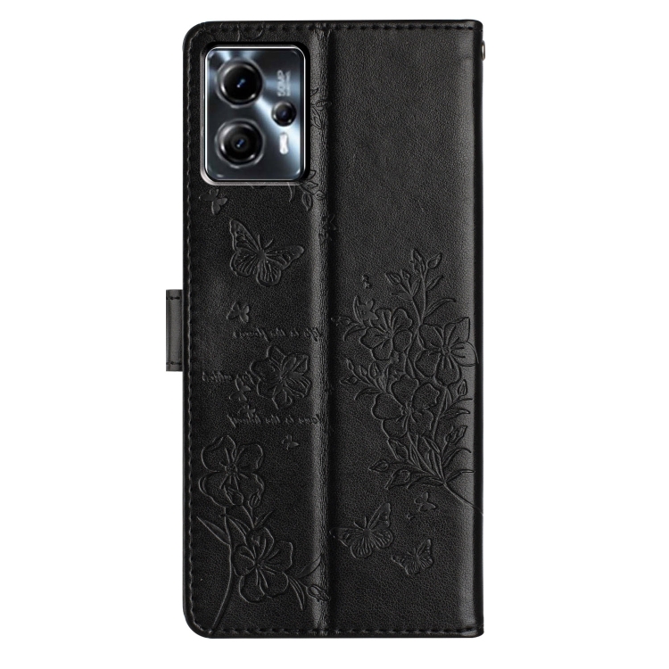 Funda de Cuero para Motorola Moto G53 5G con Mariposas y Flores (Negro)