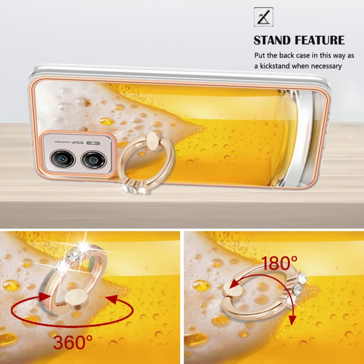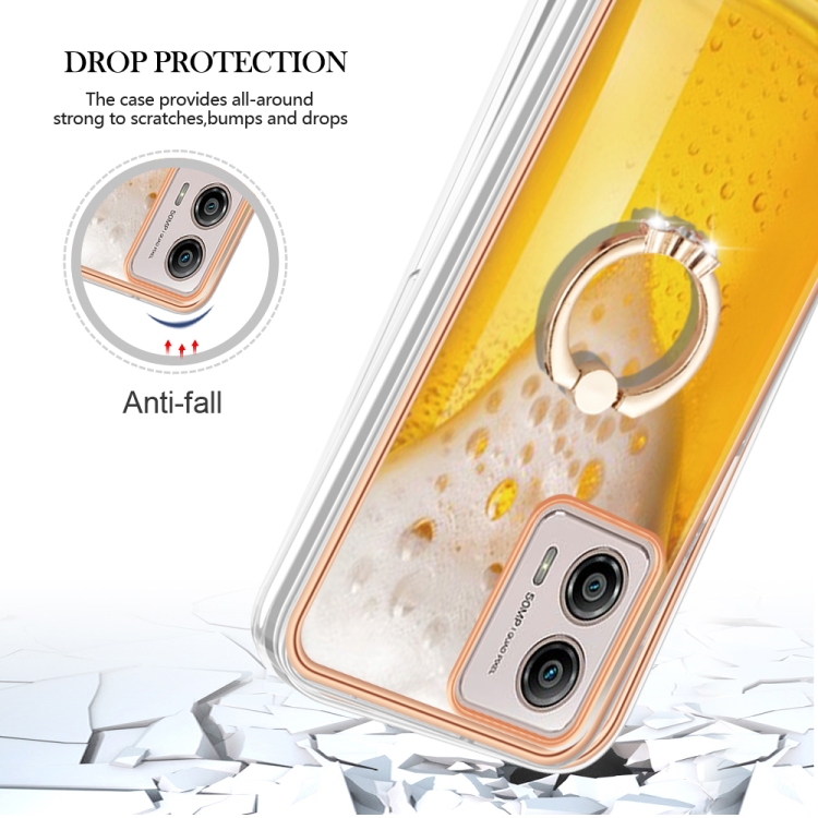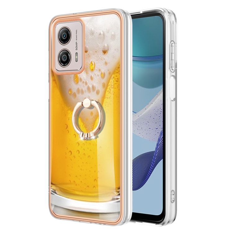 Caja para Motorola Moto G53 / G23 / G13 Imd Doble Cara Galvanizada con Soporte para Anillo (Cerveza de Barril)