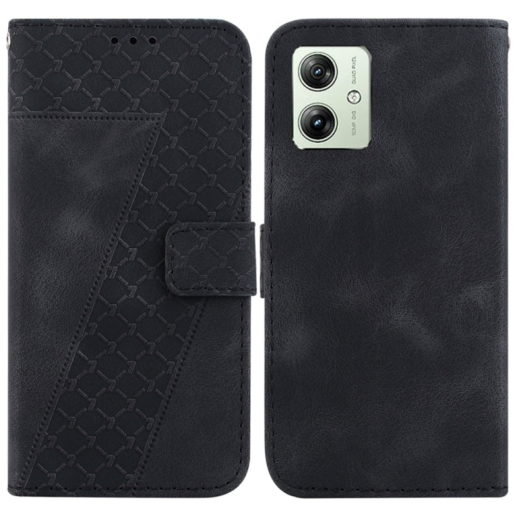 Funda de Cuero para Motorola Moto G54 con Relieve en Forma de 7 (Negro)