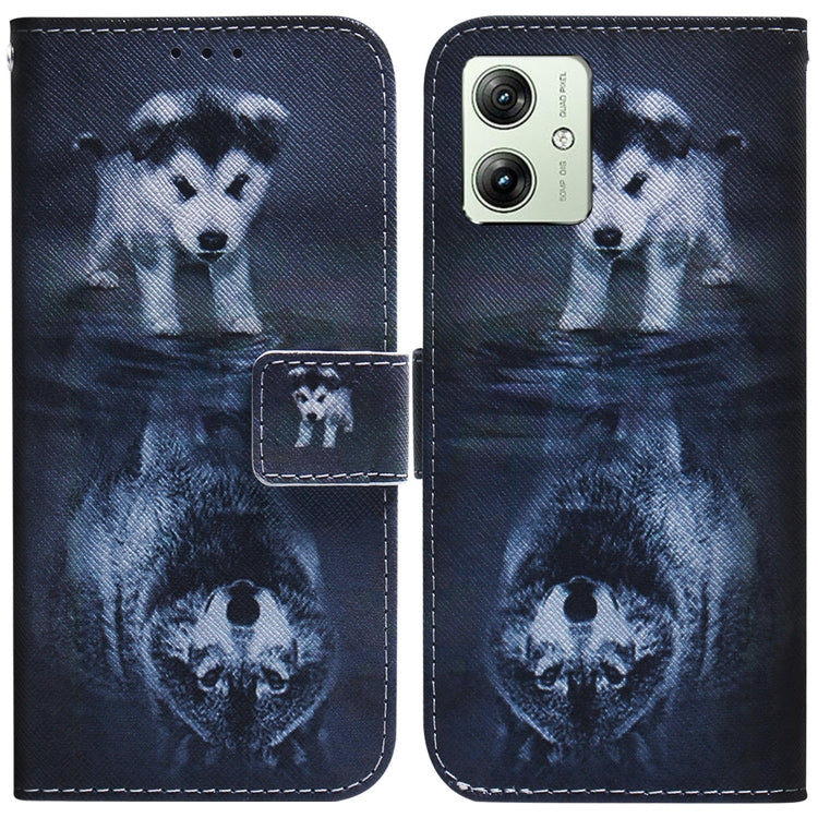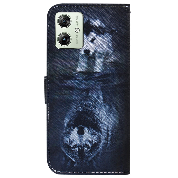 Funda de Cuero para Motorola Moto G54 con Tapa y Dibujo Coloreado (Lobo y Perro)