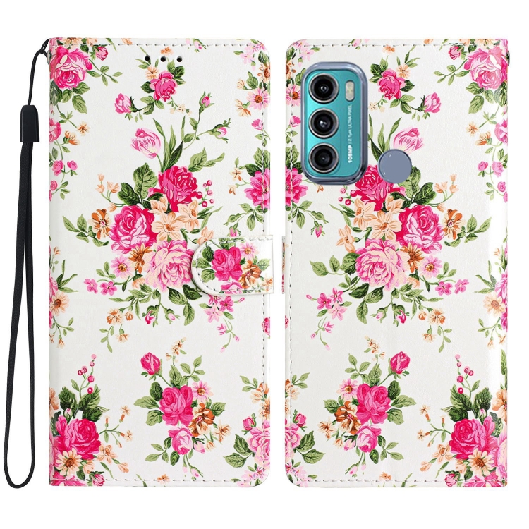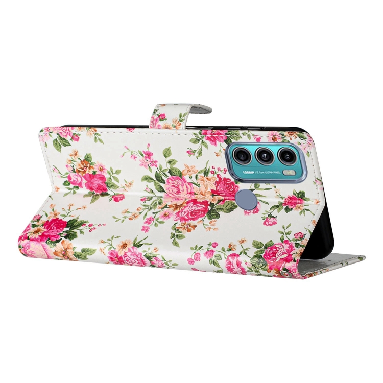 - 1x Estuche de Cuero para Motorola Moto G60 con Dibujo Coloreado de Peonías
