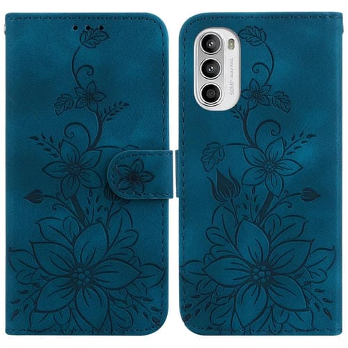 - 1x Funda de Cuero en Relieve para Motorola Moto G62 5G Lily (Azul Oscuro)