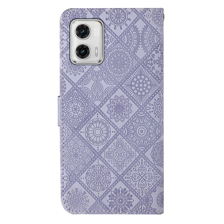 Funda de Cuero para Motorola Moto G73 con Patrón en Relieve Estilo Étnico (Púrpura)