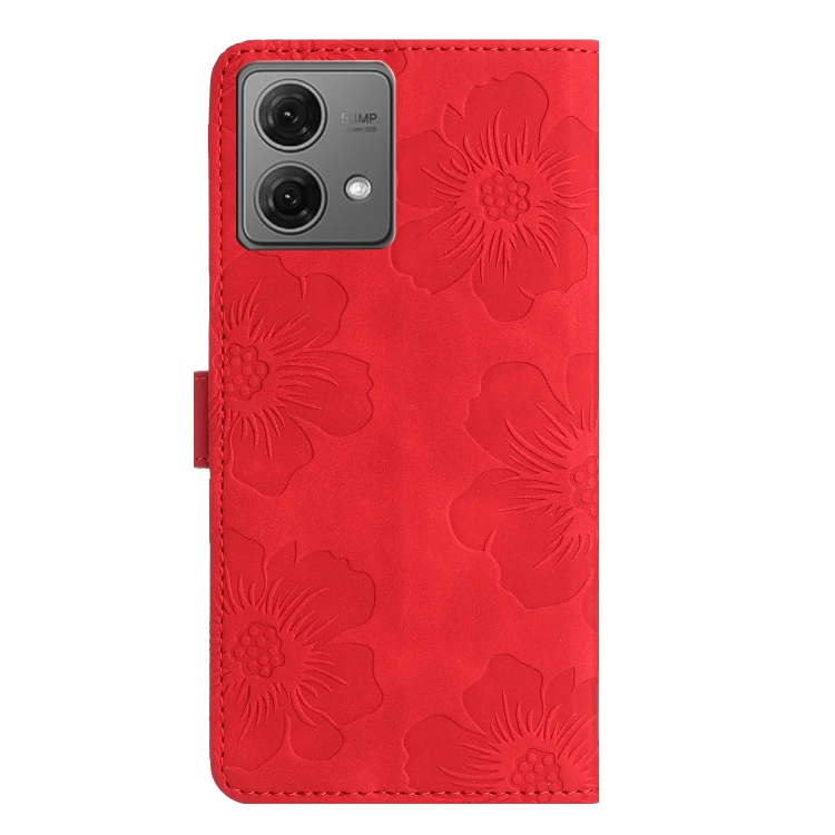 Funda de Cuero para Motorola Moto G84 5G con Estampado de Flores (Rojo)