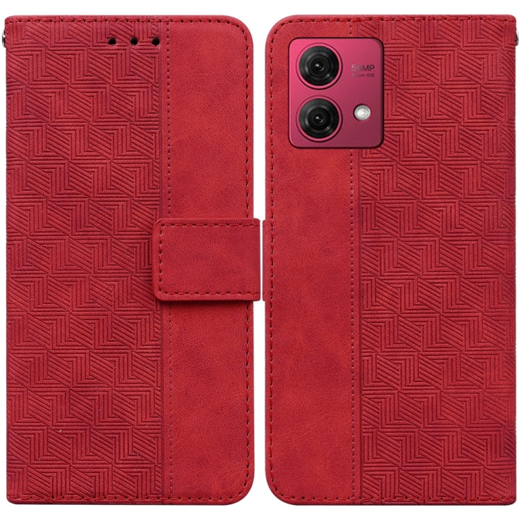 Funda de Cuero para Motorola Moto G84 con Relieve Geométrico (Rojo)