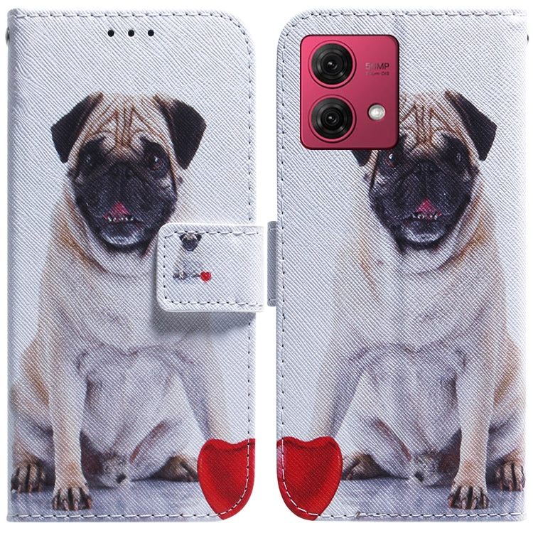 Funda de Cuero con Tapa para Motorola Moto G84 con Dibujo Coloreado (Pug)