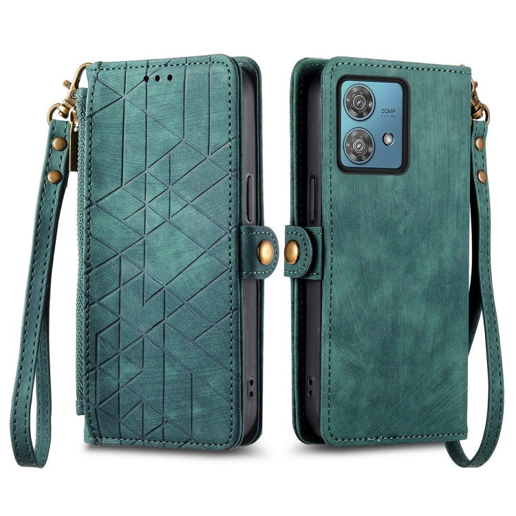 Funda de Cuero para Motorola Moto G84 con Hebilla Lateral y Billetera con Cremallera (Verde)
