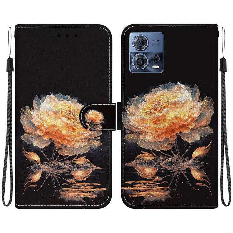 Funda de Cuero para Motorola Moto S30 Pro 5G con Dibujo Coloreado y Textura de Cristal (Peonía Dorada)