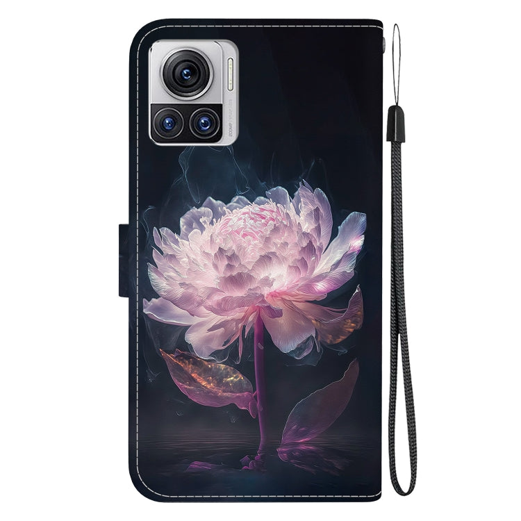 Funda de Cuero para Motorola Moto X30 Pro 5G con Dibujo Coloreado y Textura de Cristal (Peonía Púrpura)