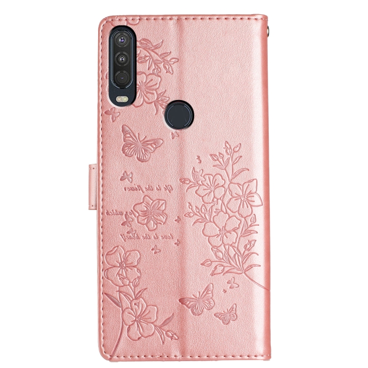 Funda de Cuero para Motorola One Action con Mariposas y Flores (Oro Rosa)