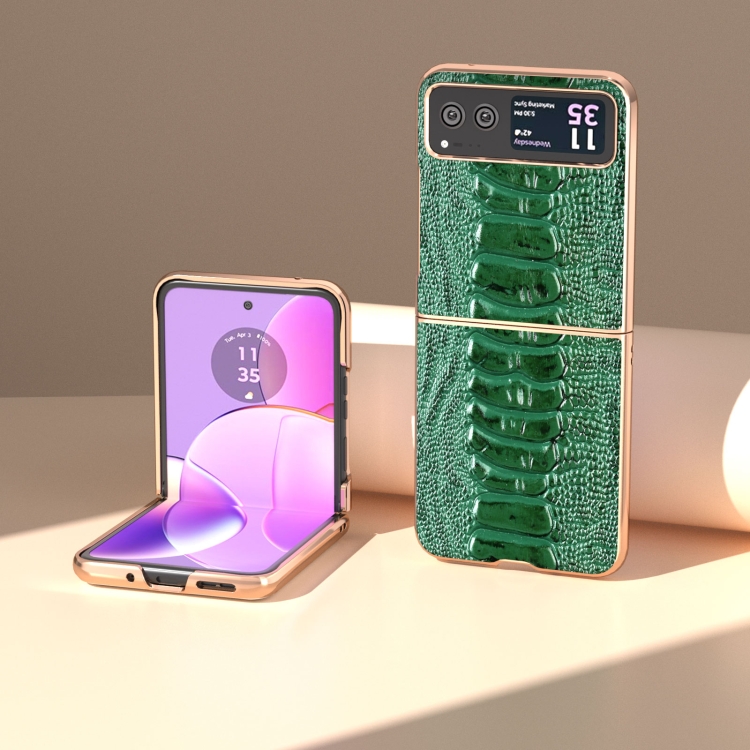 Funda para Motorola Razr 40 Serie Weilai de Cuero Genuino con Nanochapado (Verde)