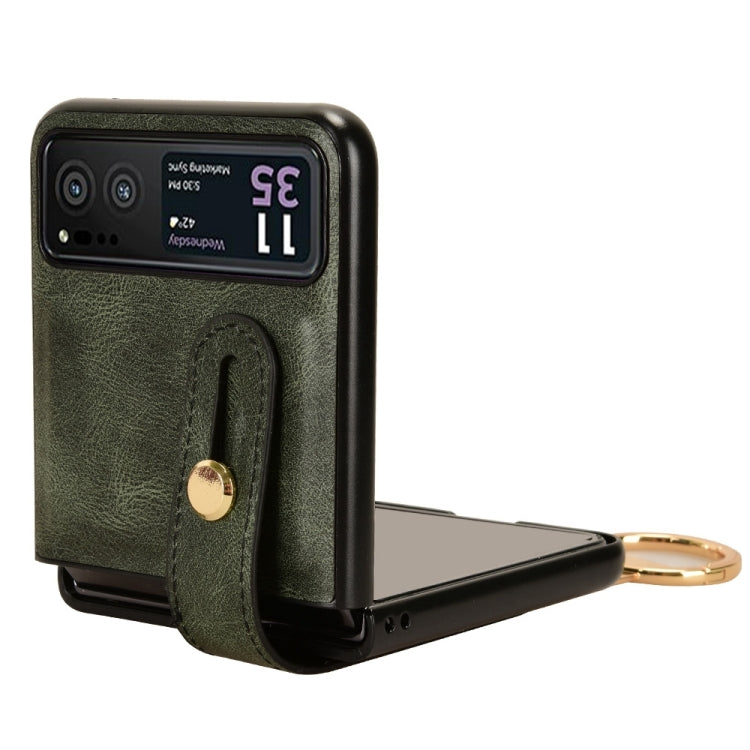 Funda Trasera de Cuero para Motorola Razr 40 con Pulsera (Verde)
