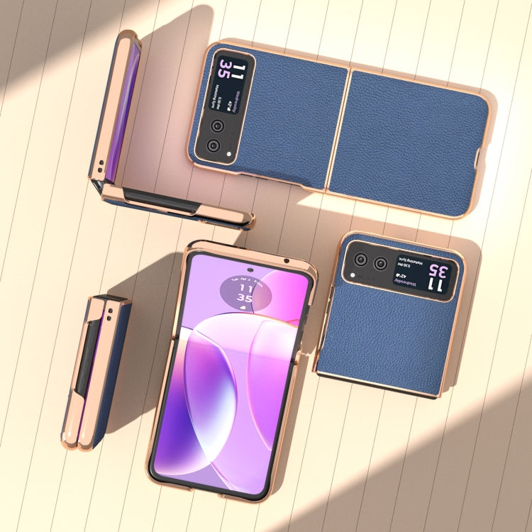 Funda para Motorola Razr 40 Nano Galvanoplastia Cuero Genuino y PC con Textura Litchi (Azul)