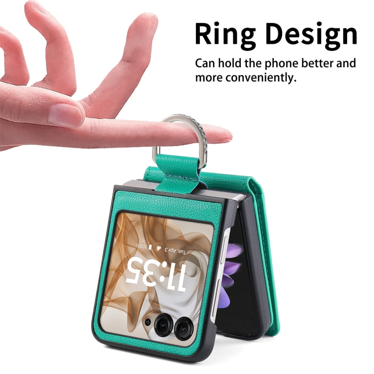Funda para Motorola Razr 50 con Billetera y Anillo de Cuero Textura Litchi (Verde)