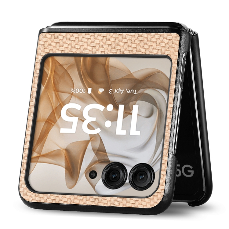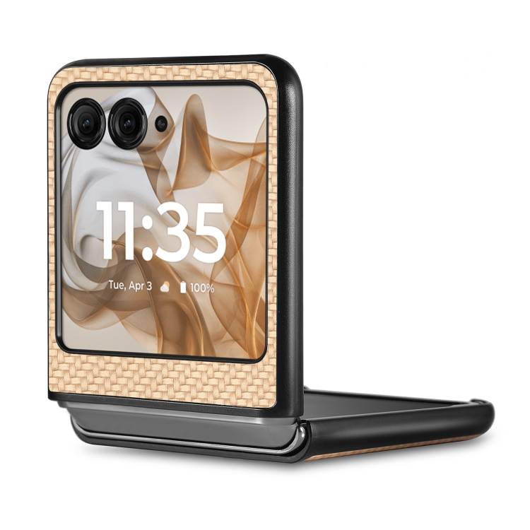Funda Trasera Motorola Razr 50 Cuero con Textura de Fibra de Carbono (Caqui)