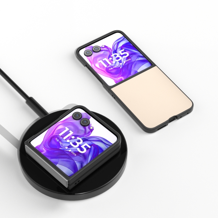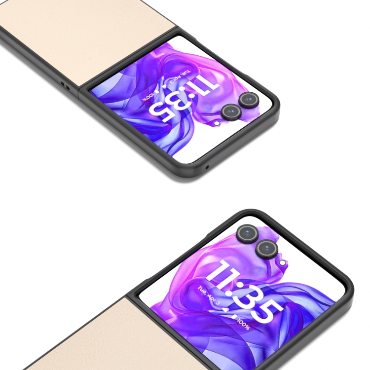Funda de Cuero PU para Motorola Razr 50 Ultra con Marco Negro y Cobertura Total (Rosa Melocotón)