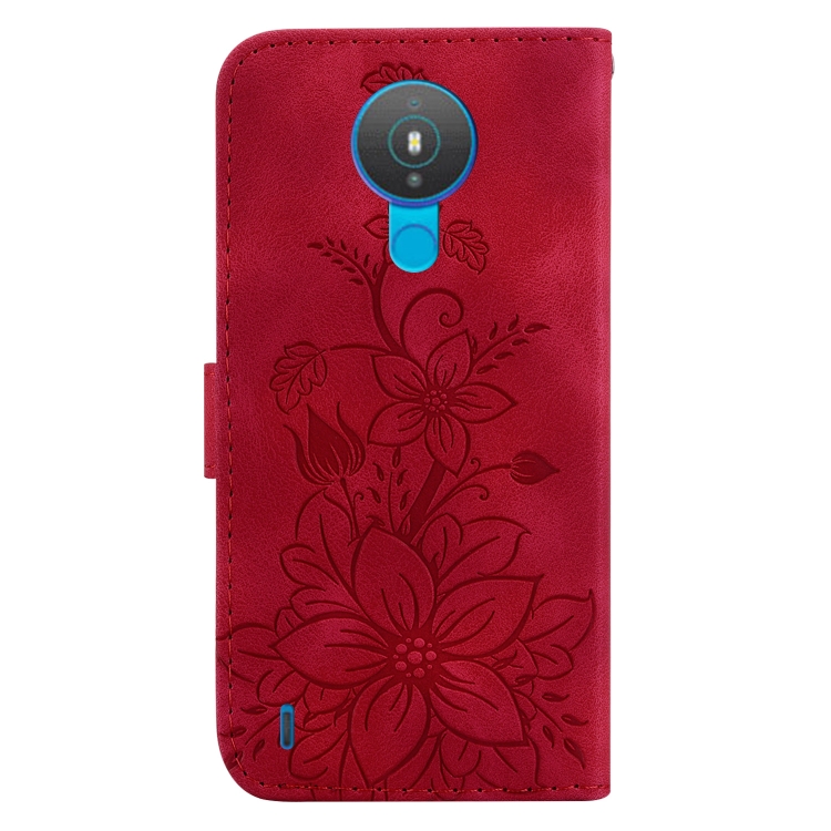 Funda de Cuero En Relieve para Nokia 1.4 Lily para Teléfono (Rojo)