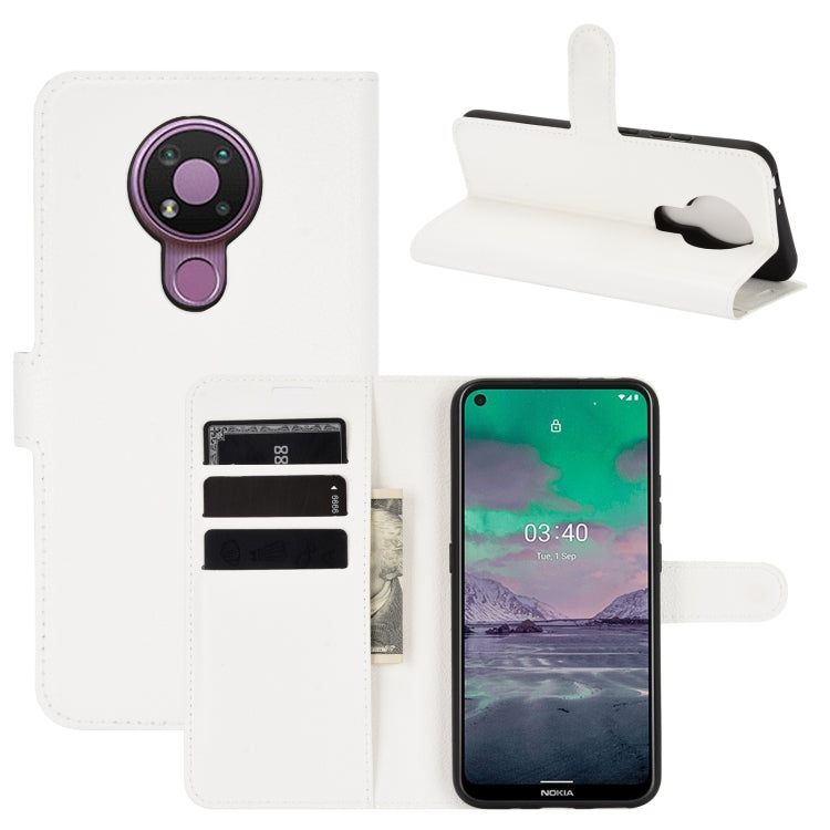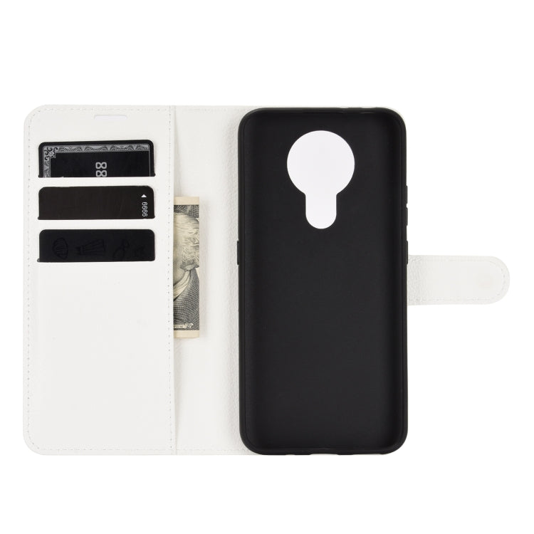 Para Nokia 3.4 Litchi Texture Funda protectora con tapa horizontal con soporte, ranuras para tarjetas y billetera (blanco)