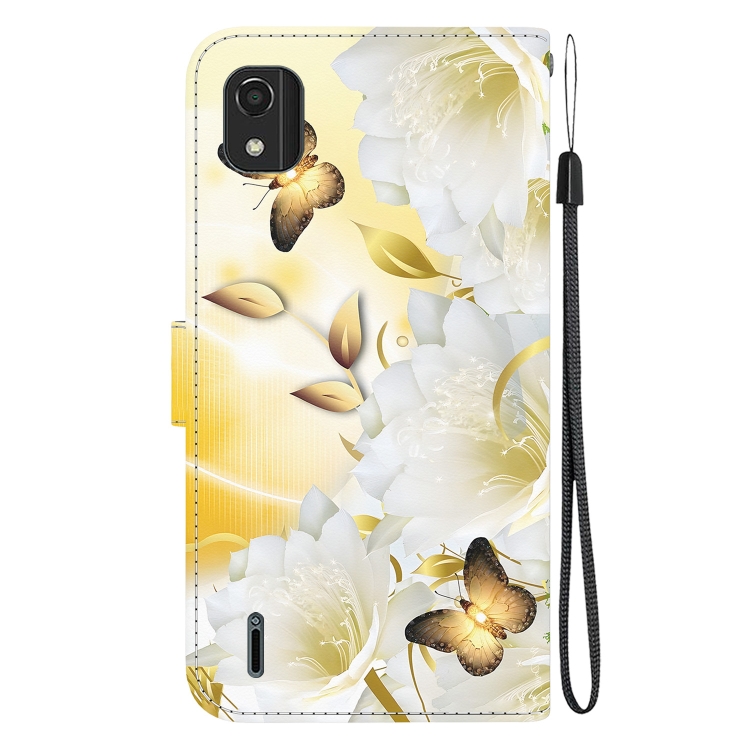 Funda para Nokia C2 2.A Edición de Cuero con Dibujo Coloreado y Textura de Cristal (Epiphyllum Mariposa Dorada)