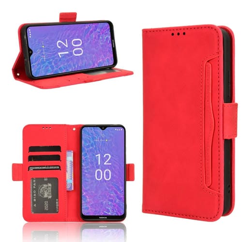 Funda de Cuero para Nokia C210 Skin Feel con Textura Becerro y Ranuras para Tarjetas (Rojo)