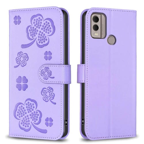 Funda para Teléfono Nokia C22 de Cuero con Relieve de Cuatro Hojas (Púrpura)