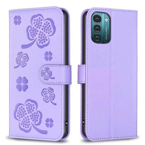 Funda para Teléfono Nokia G11 / G21 Cuero con Relieve de Cuatro Hojas (Púrpura)