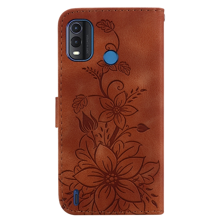 Funda de Cuero para Nokia G11 Plus con Relieve Lily (Marrón)