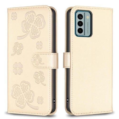Funda de Cuero para Nokia G22 con Relieve de Cuatro Hojas (Dorado)