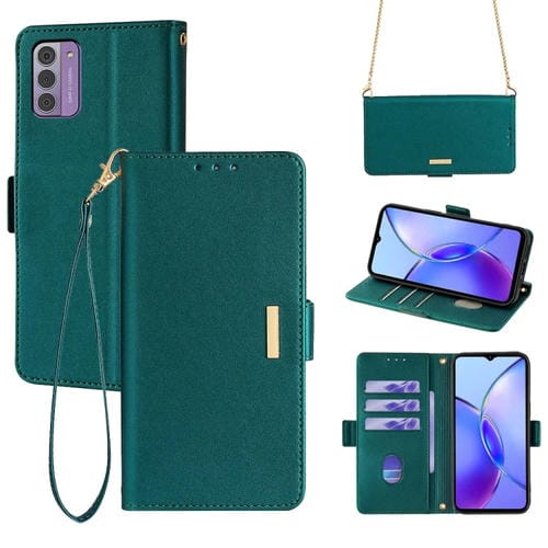 Funda de Cuero para Nokia G42 4G con Cadena Cruzada (Verde)