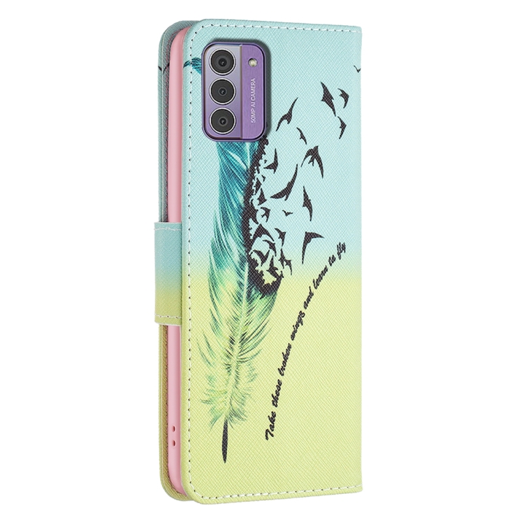 Estuche de Cuero para Nokia G42 con Patrón de Dibujo Coloreado y Pluma