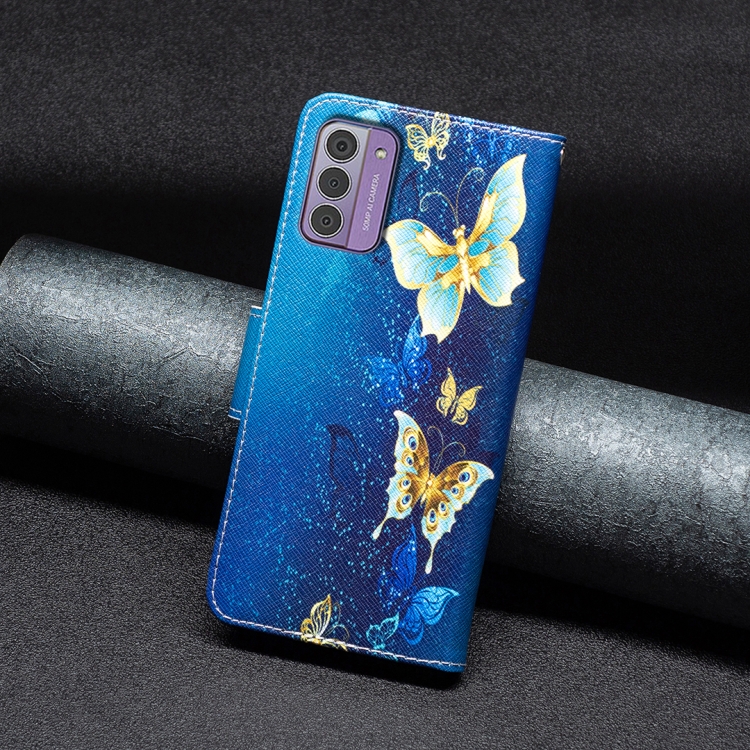 Estuche para Teléfono Nokia G42/G310 de Cuero con Dibujo Coloreado (Mariposa Dorada)