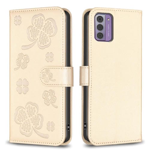 Funda para Teléfono Nokia G42 / G310 de Cuero con Relieve de Cuatro Hojas (Dorado)