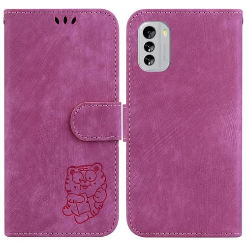 Funda para Teléfono Nokia G60 de Cuero con Relieve Little Tiger (Rojo Rosa)