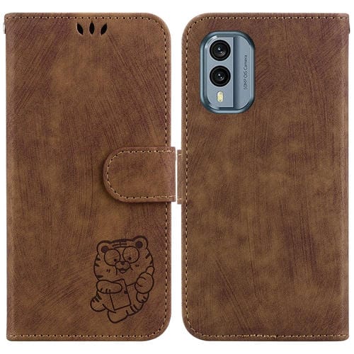 Funda de Cuero para Nokia X30 Little Tiger con Relieve (Marrón)
