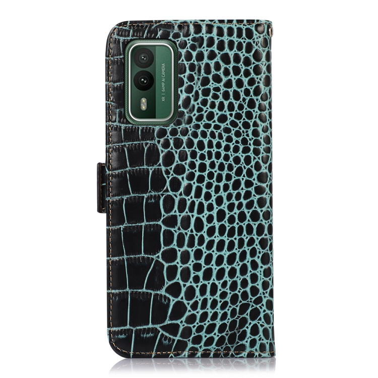 Funda para Nokia Xr21 Cocodrilo Capa Superior Cuero de Vaca (Verde)