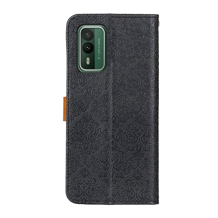 Estuche para Teléfono Nokia Xr21 de Cuero con Tapa en Relieve Floral Europeo (Negro)