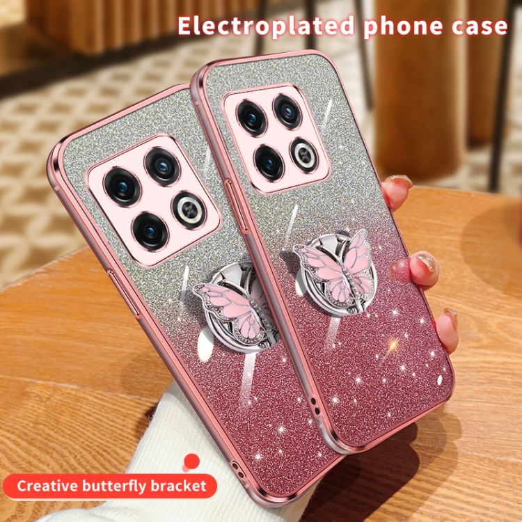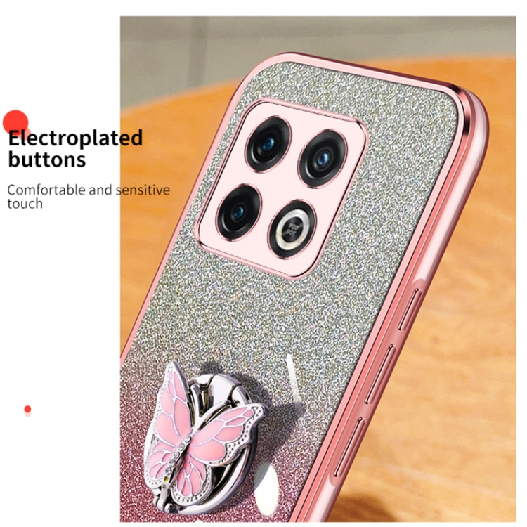 Funda TPU para OnePlus 10 Pro con Soporte de Mariposa y Brillo Degradado (Rosa)