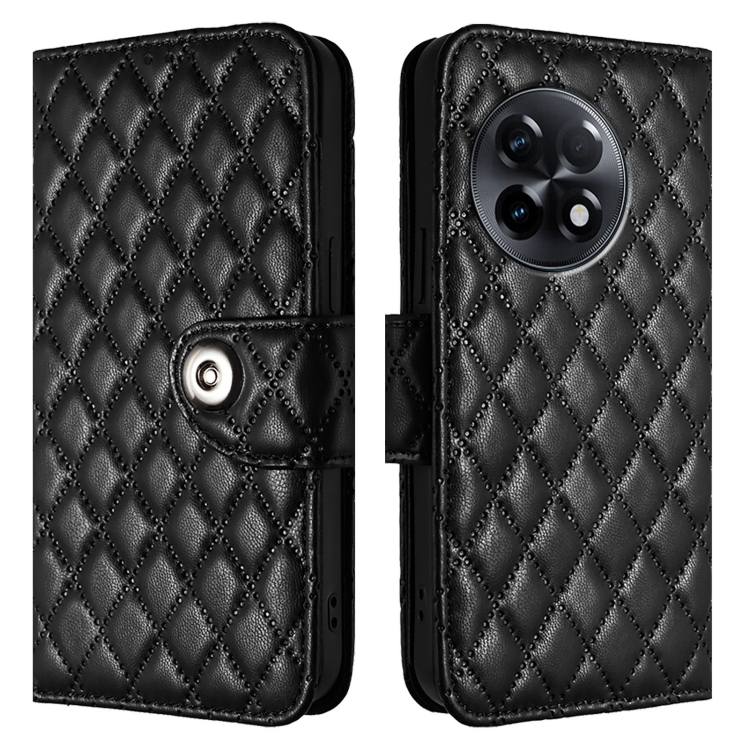 Funda para OnePlus 11R de Cuero con Tapa, Textura Rómbica y Cordón (Negro)