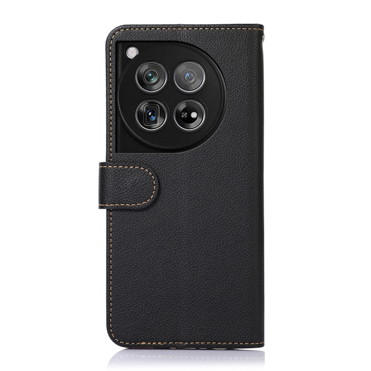 Funda para OnePlus 12 Khazneh Litchi Texture con Protección RFID de Cuero (Negro)