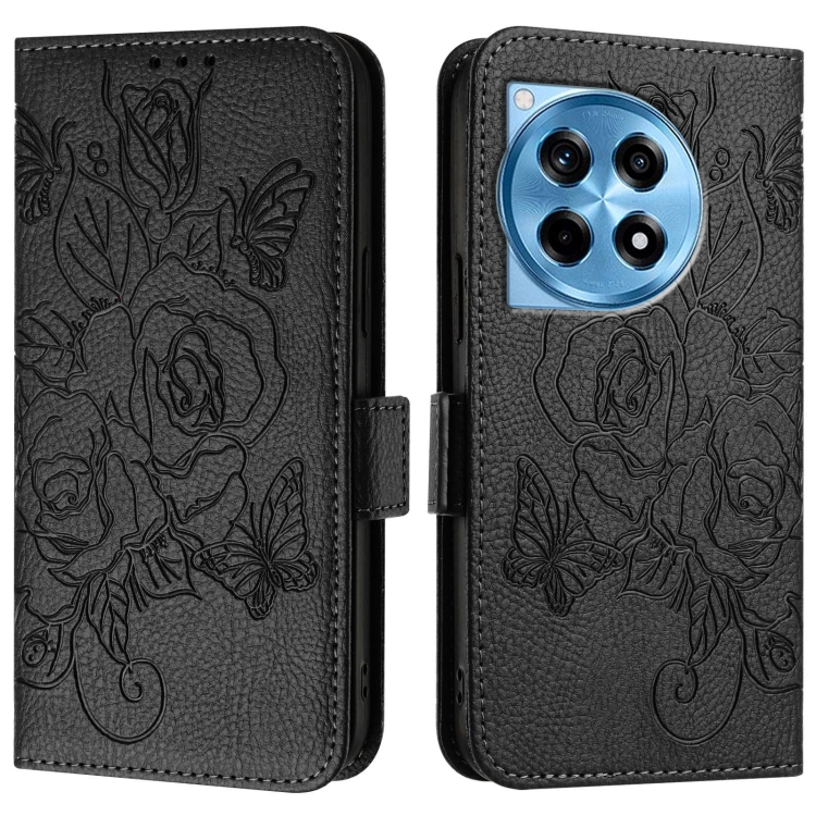 Funda de Cuero Antirrobo RFID para OnePlus 12R 5G con Relieve Rosa (Negro)