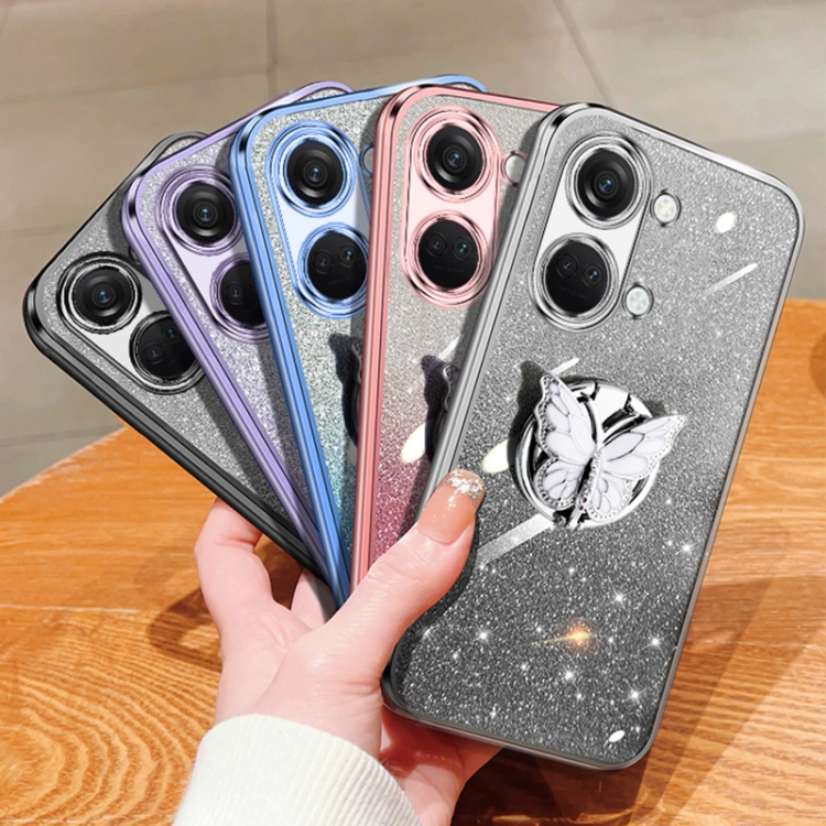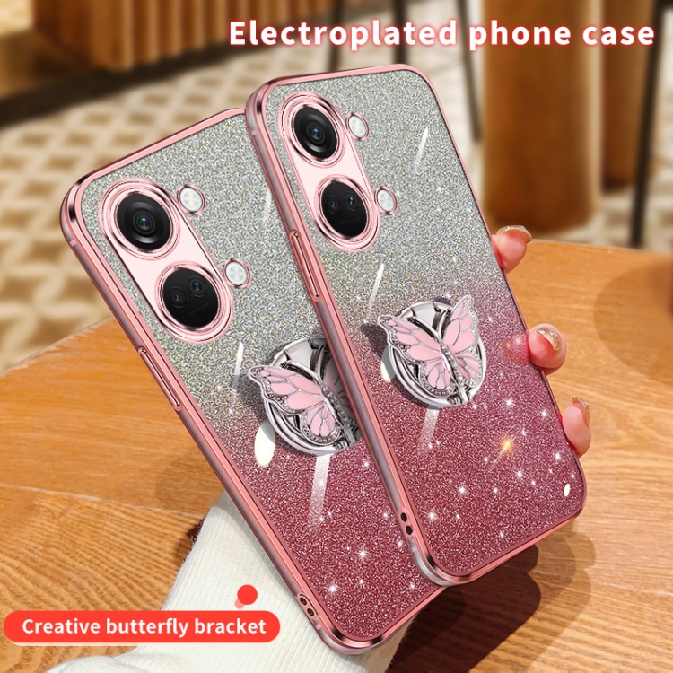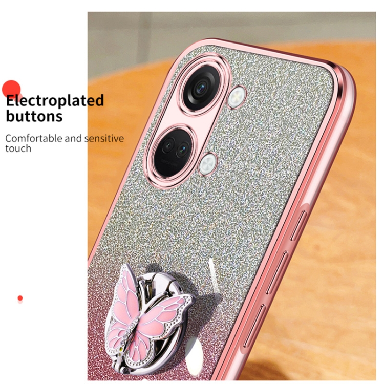 Funda TPU para OnePlus Ace 2V con Soporte de Mariposa y Brillo Degradado (Rosa)