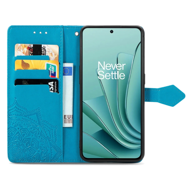 - 1x Estuche para OnePlus Ace 2V Mandala Flower de Cuero en Relieve (Azul)