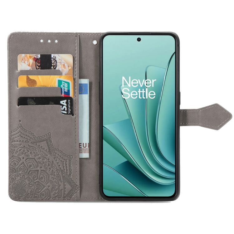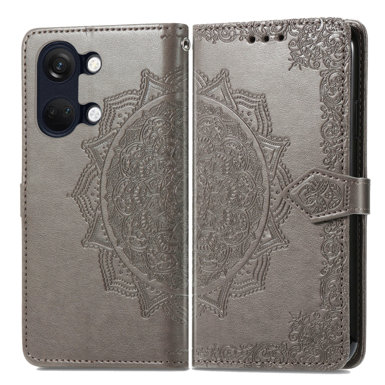 - 1x Estuche para OnePlus Ace 2V Mandala Flower de Cuero en Relieve (Gris)