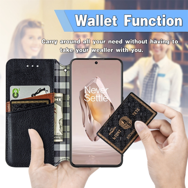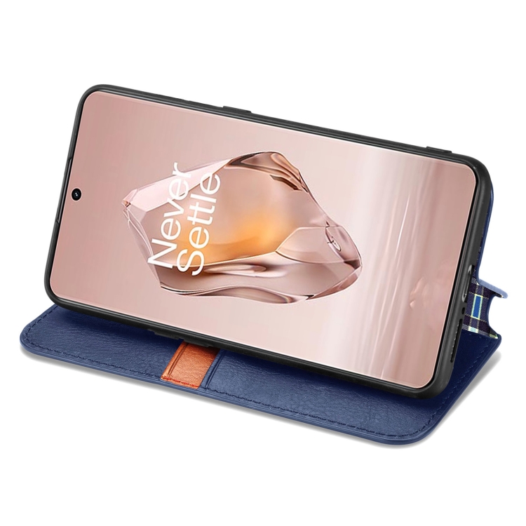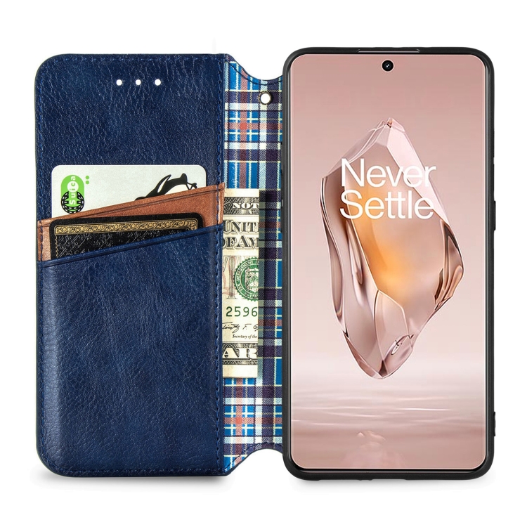 Funda de Cuero Magnético Prensado para OnePlus Ace 3 Cubic Grid (Azul)