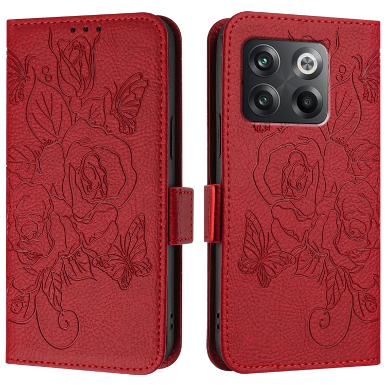 Funda de Cuero Antirrobo RFID para OnePlus Ace Pro 5G / 10T 5G con Relieve Rosa (Rojo)