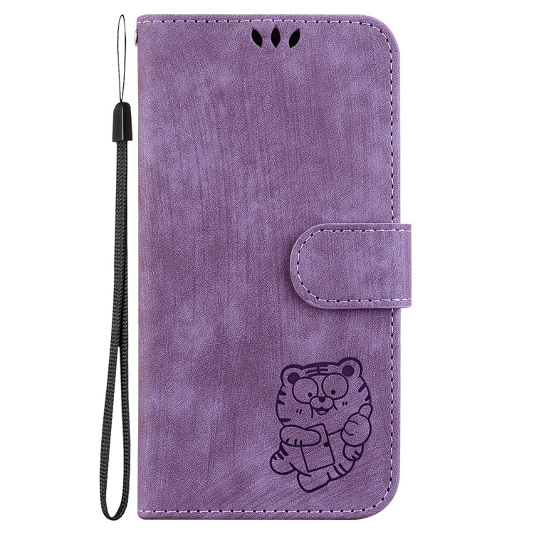 Funda de Cuero para OnePlus Nord 2T Little Tiger en Relieve (Púrpura)