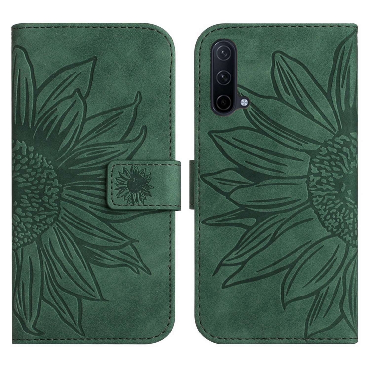 - 1x Funda de Cuero Flip para OnePlus Nord CE 5G con Cordón y Diseño Sun Flower (Verde)