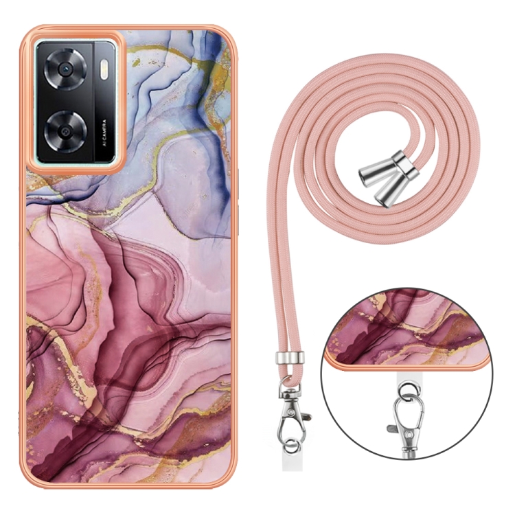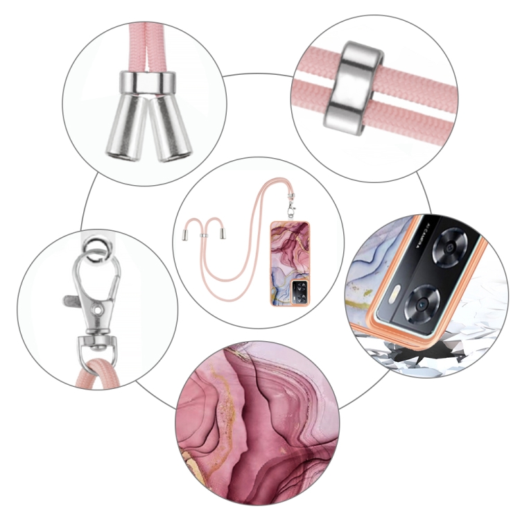 Estuche para OnePlus Nord N300 IMD Doble Cara Mármol Galvanizado con Cordón (Rose Red)